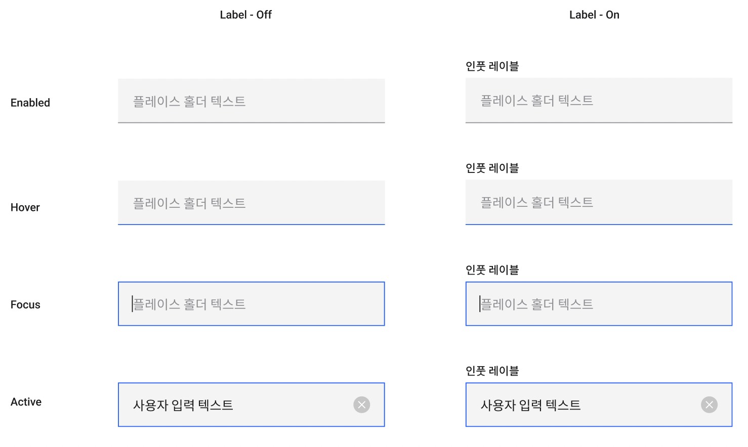 입력 필드는 사용자 데이터를 입력할 수 있는 위치를 나타냅니다. 이들은 종종 필드의 크기와 면적과 배경의 차이로 표시됩니다.